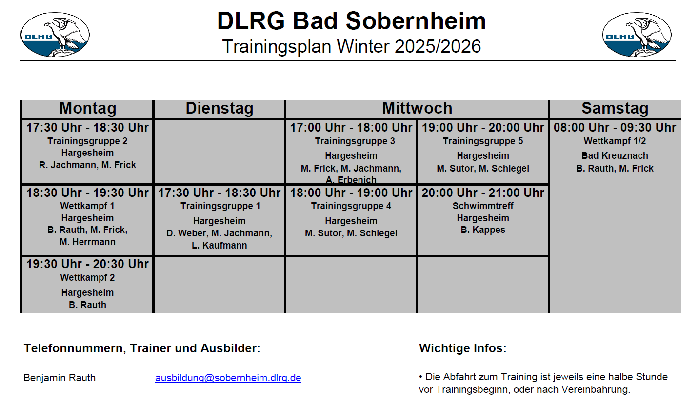 Vollständige Liste der Ansprechpartner der DLRG Ortsgruppe Bad Sobernheim e.V. findest du hier .